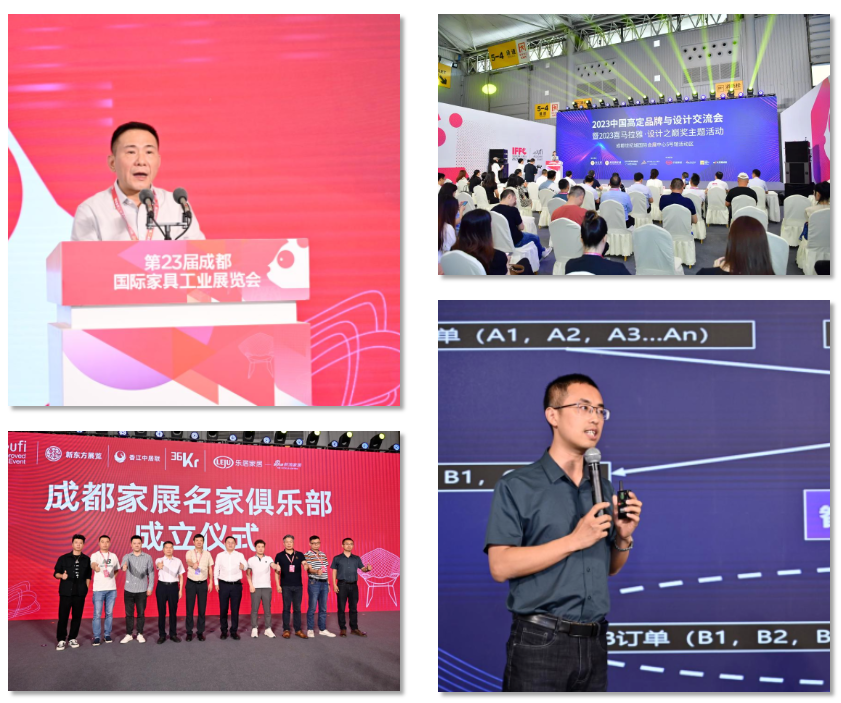 此外,展会期间,围绕“设计创意”“生活美学”等主题,展会还成功举办了产业组织结构与平台创新举措沙龙、2023家居产业未来发展大会、产业组织结构与平台创新举措沙龙、全国知名卖场战略合作仪式、成都家具展名家俱乐部成立仪式,以及发现创造力设计师主题活动、2023高定中国行·成都站‘遇见高定主流’思享交流会暨2023喜马拉雅设计之巅奖主题活动等近10场家居行业主题活动。