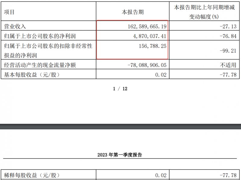 4月27日,梦天家居发布2023年第一季度报告。据报告,梦天家居2023年第一季度营业收入1.63亿元,同比下降27.13%;归属于上市公司股东的净利润487.00万元,同比下降76.84%。