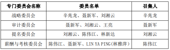 非独立董事:林新达先生、辛兆龙先生、LIN YA PING(林雅萍)女士、王亮先生