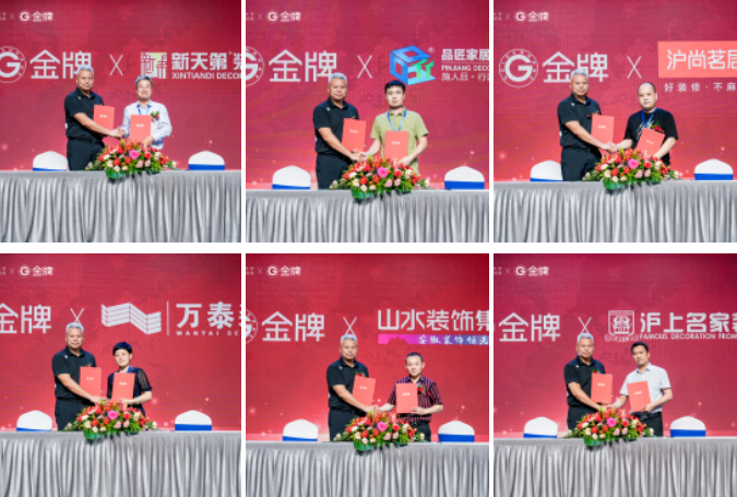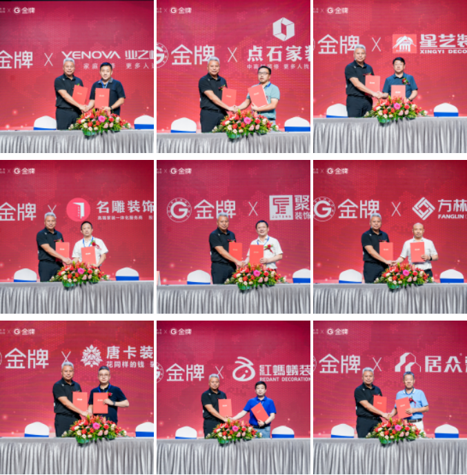 此次战略峰会签约仪式中,金牌先后与业之峰装饰、点石家装、广东星艺装饰、深圳名雕装饰、上海聚通装饰、沈阳方林装饰、重庆唐卡装饰、苏州红蚂蚁装饰、居众装饰、河北新天地装饰、广西品匠装饰、上海沪尚茗居、山东万泰装饰、山水装饰、河南沪上名家装饰等全国头部装企签署战略合作协议!