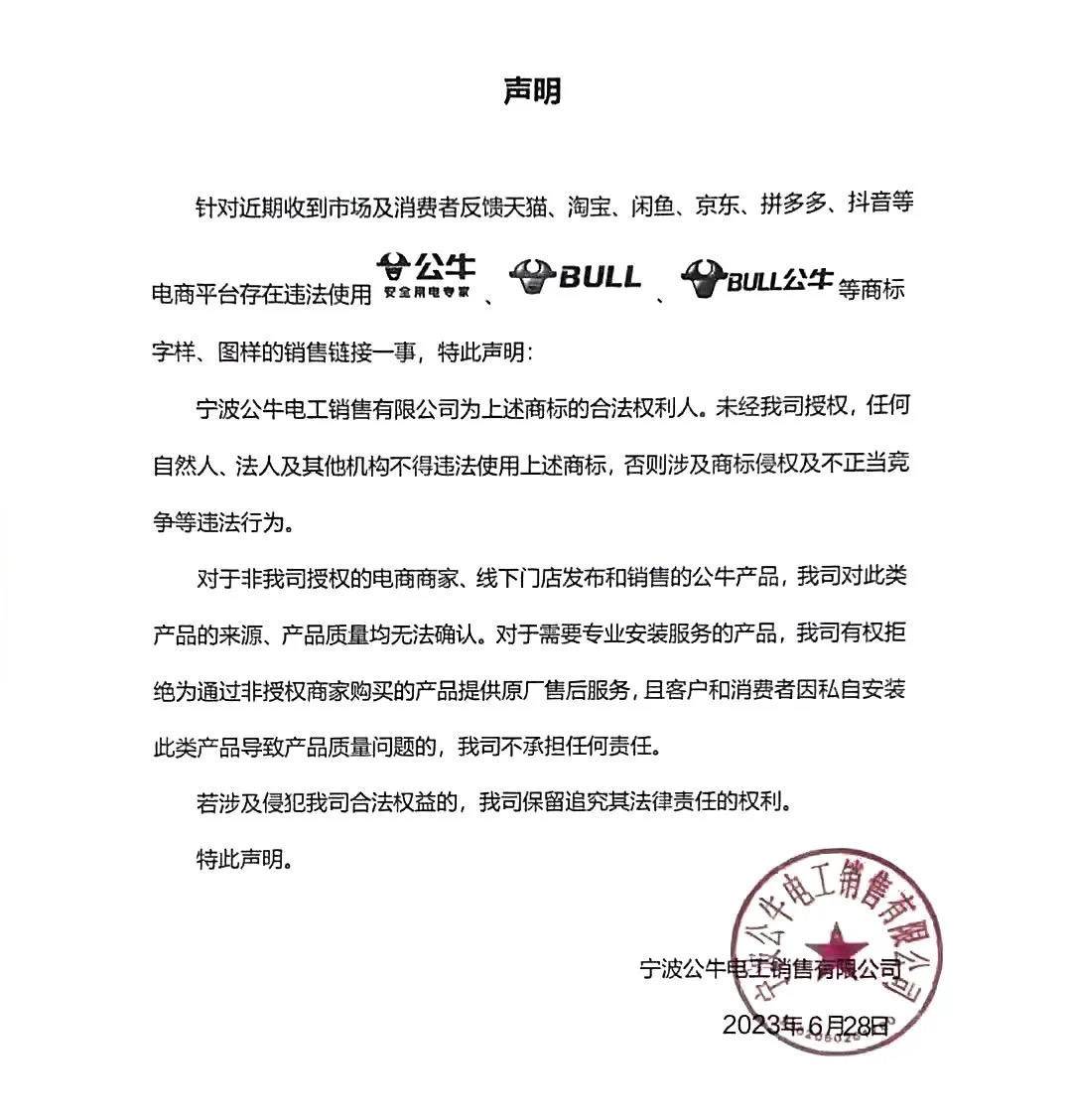 6月28日,公牛一则《声明》引发行业高度关注。