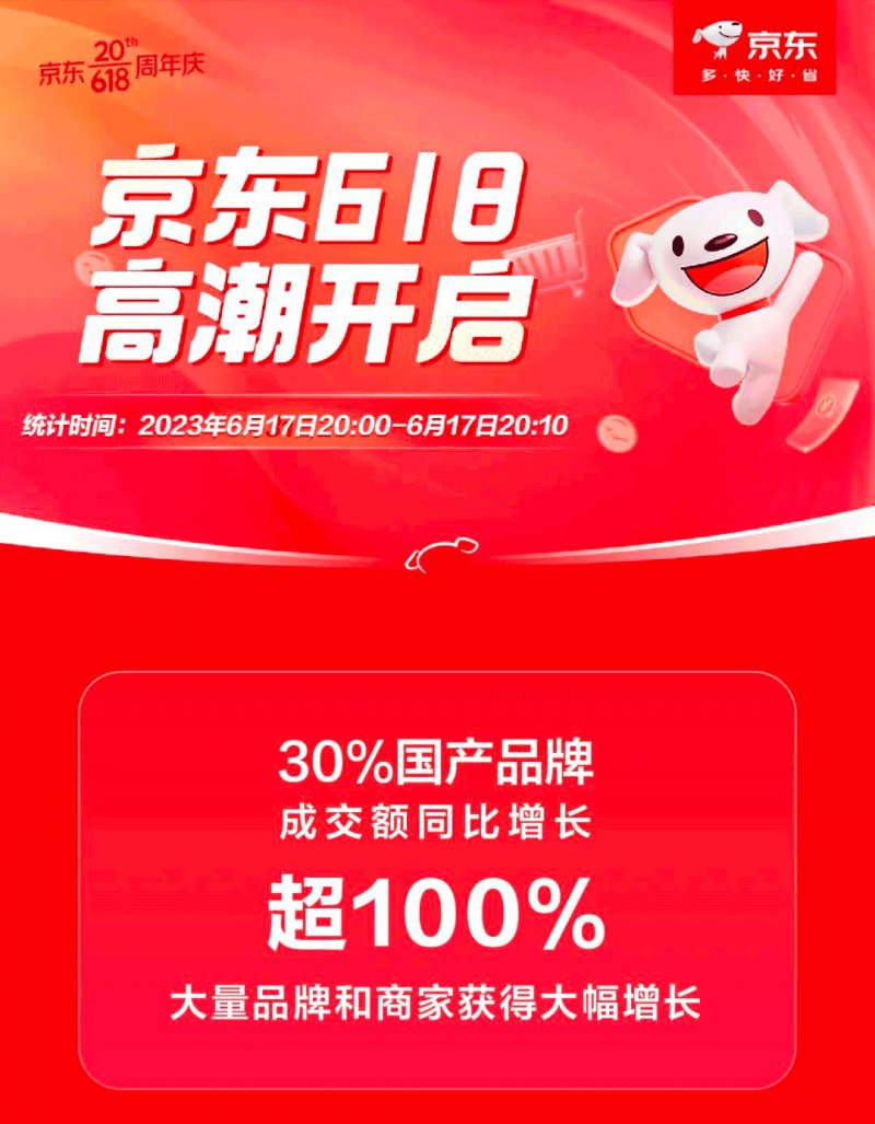 6月17日晚8点,京东618的高潮期开启,短短10分钟内,30%国产品牌成交额同比增长100%,以旧换新订单成倍增长,海量用户涌入,京东云每秒用户访问峰值同比提升119%,让烟火气持续沸腾。