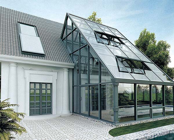 阳光房的房面也是不可忽视的一项。阳光房面材料主要有断桥铝门窗、铝包木门窗、彩钢板或者塑钢门窗。个人建议房面用中空玻璃再配合断桥铝合门窗作为骨架。