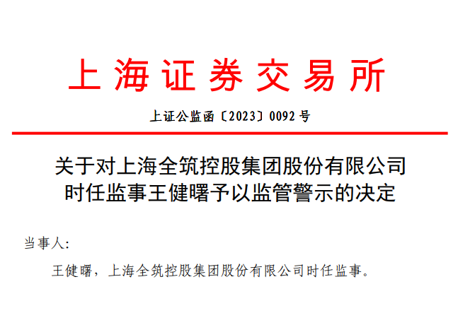 6月26日,上交所对全筑股份时任监事王健曙予以监管警示。