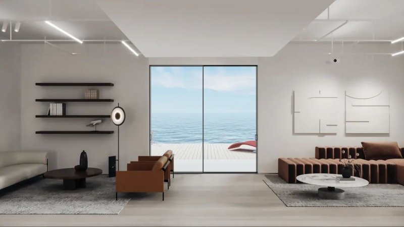 苏格兰星灰,不仅能够赋予门窗架构以更简练的线条,将铝合金型材的高级质感体现得更加淋漓尽致,同时以其低饱和度,无明丽、不争抢的特性,结合大面积玻璃窗带来充足的光线,让日常生活情境与审美精神在同一范畴交融,摆脱艳俗的的审美疲劳,回归一切从简的美好心境。