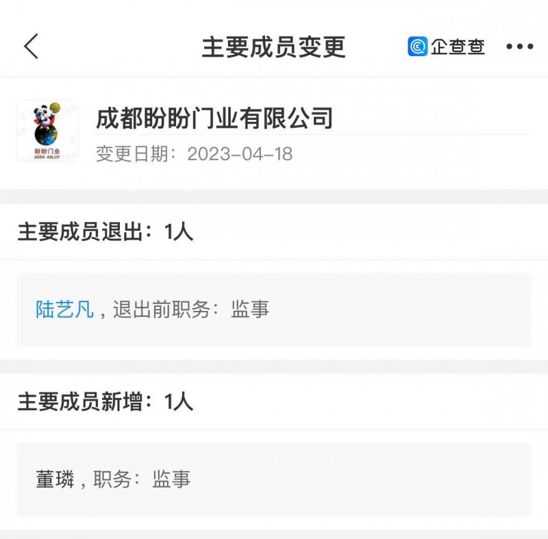 乐居财经 吴文婷 4月18日,据企查查,成都盼盼门业有限公司(以下简称“成都盼盼门业”)高管变动,陆艺凡退任监事,董璘接替。