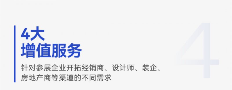 针对疫后行业及企业营销渠道多元化开拓和升级转型的新需求、以及参展企业渠道开拓和升级的痛点,2023中国建博会(广州)分别针对参展企业开拓经销商、设计师、装企、房地产商等渠道的不同需求,有目标、有针对性地推出“卖场·联盟”、“设计·师说”、“装企·联盟”、“房地产·商说”4大增值服务计划,并针对参展企业线上需求和品宣的需求,分别推出“赋能·云展”、“行业·咖说”2大增值服务计划,形成以协助参展企业营销渠道开拓为中心、配以线上服务和品宣服务的6大增值服务行动计划,通过展前、展中和展后一系列对接、论坛活动和软文品宣,持续赋能参展企业开拓和升级渠道。