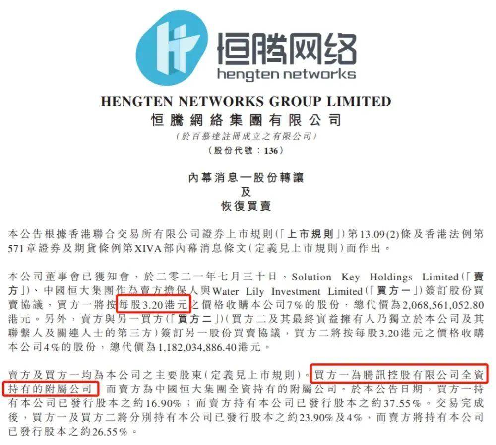 时间到了2021年11月,之前还帮助许家印套现的腾讯画风突变,开始和恒大抢着礼让第二大股东的位置。
