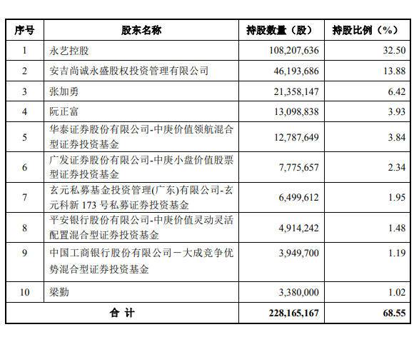 本次向特定对象发行的新股登记完成后,永艺股份增加3040万股有限售条件流通股。本次发行不会导致公司控制权发生变化,永艺控股仍为公司控股股东,张加勇和尚巍巍仍为公司实际控制人。