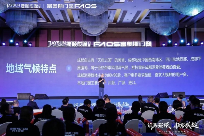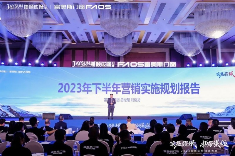 富奥斯门窗董事长潘锡波先生、副董事长贺杰雄先生、总经理刘俊龙先生、营销总监罗聪先生、品牌总监王刚先生、市场运营总监张泽林先生及招商总监刘观石先生等公司领导,全联(全国工商联)房地产商会节能门窗分会执行会长潘慧玲女士、新浪家居门窗行业全国总经理叶玲菊女士、佛山市门窗行业协会秘书长张聪先生等业内大咖,携手富奥斯全国核心经销商及媒体代表共聚一堂,聚焦行业发展趋势,研判品牌战略方向,以“筑基强根·拓局谋远”为大会主题,共同见证荣耀与辉煌,奋楫开启富奥斯门窗高质量发展的崭新篇章!