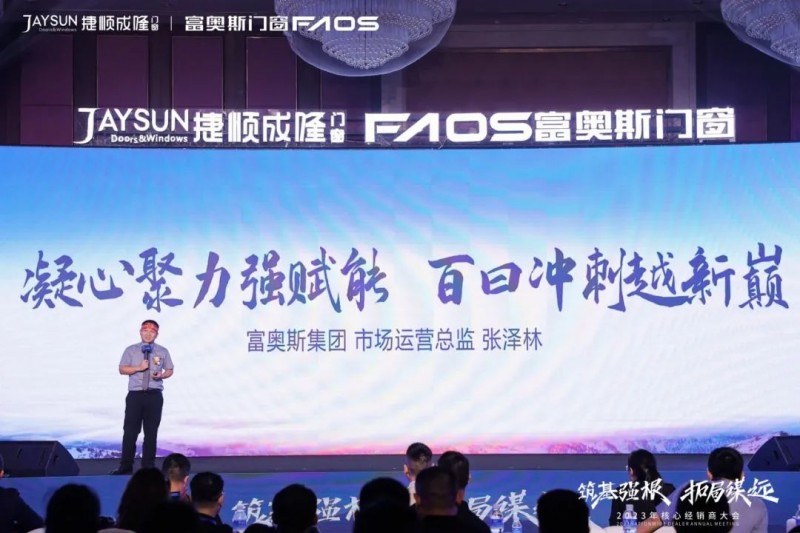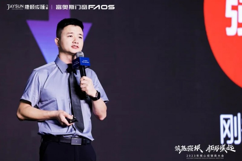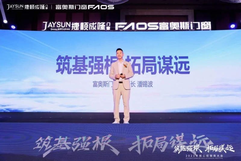 会议伊始,董事长潘锡波先生围绕《筑基强根·拓局谋远》展开主题演讲,他在会上坚定表示,富奥斯的“本”是佛山。自古以来,“佛山制造”就已极负盛名,更是“四大名镇”、“四大聚”之一。富奥斯目标清晰,就是利用好“佛山制造”这一块金字招牌,把品牌做大做强。疫情过后,国门一开,万邦来商。消费信心在回升,中国经济将全面复苏,定制门窗的前景广阔。过去的一年,我们实施了人才战略体系,广纳人才,焕新团队,为提振市场信心、扩大品牌影响力、拓展营销思路等战略方针,实现“不忘本来”与“吸收外来”的结合,更好地“面向未来”。