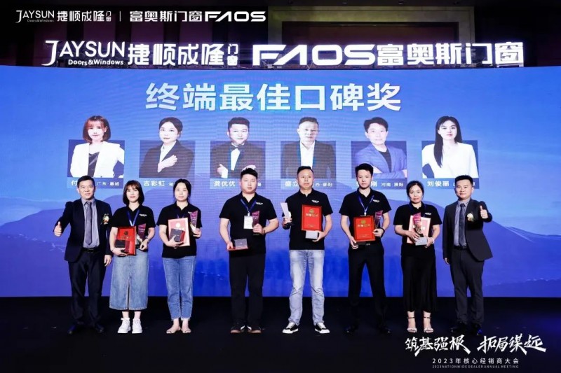 富奥斯门窗取得骄人的成绩,离不开广大经销商的大力支持与信任。在本次经销商表彰盛典上,“十强经销商”、“品牌形象建设奖”、“终端最佳口碑奖”和“新锐奖”四大年度重磅奖项逐一揭晓。榜样力量,追光前行,他们将成为全国经销商的优秀榜样和浪潮中的引领者。