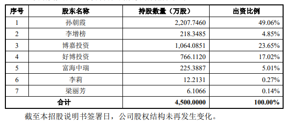 截至本招股说明书签署日,孙朝霞、李增榜夫妇为公司实际控制人。其中,李增榜担任公司董事长,直接持有公司4.85%的股份;孙朝霞担任公司董事兼副总经理,直接持有公司49.06%的股份。
