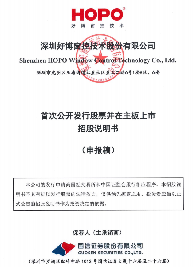 6月27日,根据深交所发行上市审核信息,深圳好博窗控技术股份有限公司(下称“好博窗控”)深市主板IPO已获受理。