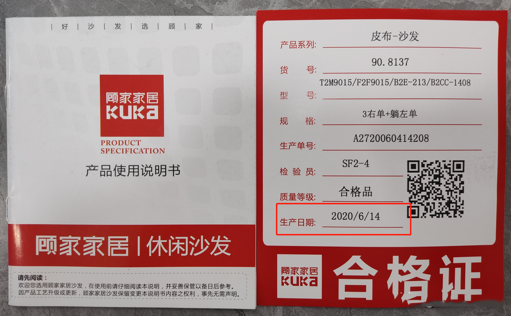 更令罗先生不解的是,售后在6月初告知他产品已经过保,原因是他无法提供收货凭证。但根据罗先生提供给记者的资料,他的交款凭证上显示交款日期为2020年5月17日。产品合格证上显示沙发的生产日期为2020年6月14日。这两个日期都能证明产品在三年质保期内。且售后曾承诺他同一个问题以第一次报修的日期为准(师傅上门检修为5月7日)。