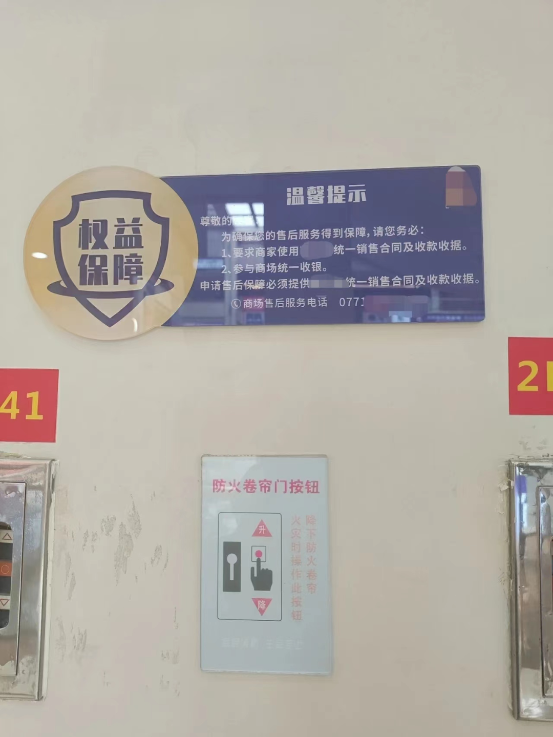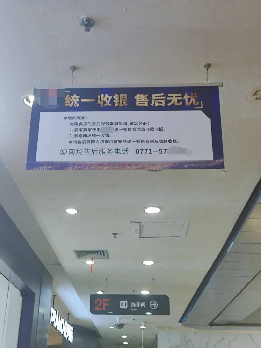 杨经理进一步解释称,“统一收银”属于市场管理方的配套服务,多家门店的门口都有相关提示,家居市场内的公共走道上也悬挂有提示标语,提醒消费者将款项统一交至家居市场,并与家居市场签订统一的销售合同,这样才能享受家居市场包括先行赔付在内的各项售后服务保障。