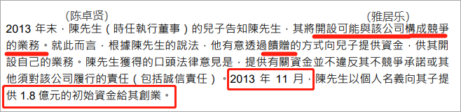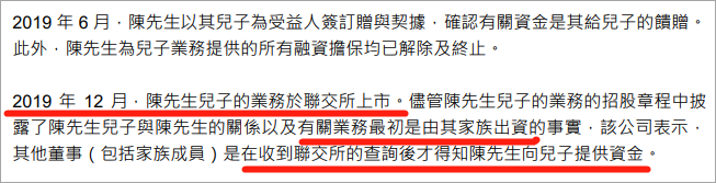 2018年10月,陈卓贤向其儿子的业务收购了有关附属公司,具体收购了什么,收购资金多少,这些都未公之于众。