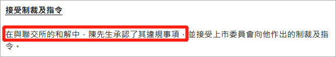 在与联交所的和解中,陈卓贤承认了违规事项,并接受上市委员会向他作出的制裁及指令。