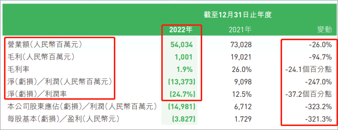 雅居乐去年的亏损是景业名邦的15倍,2022年净亏损133.73亿。