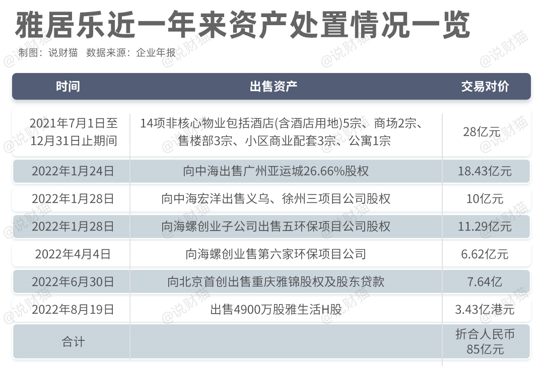 去年为了偿债,雅居乐出售了不少资产回血。