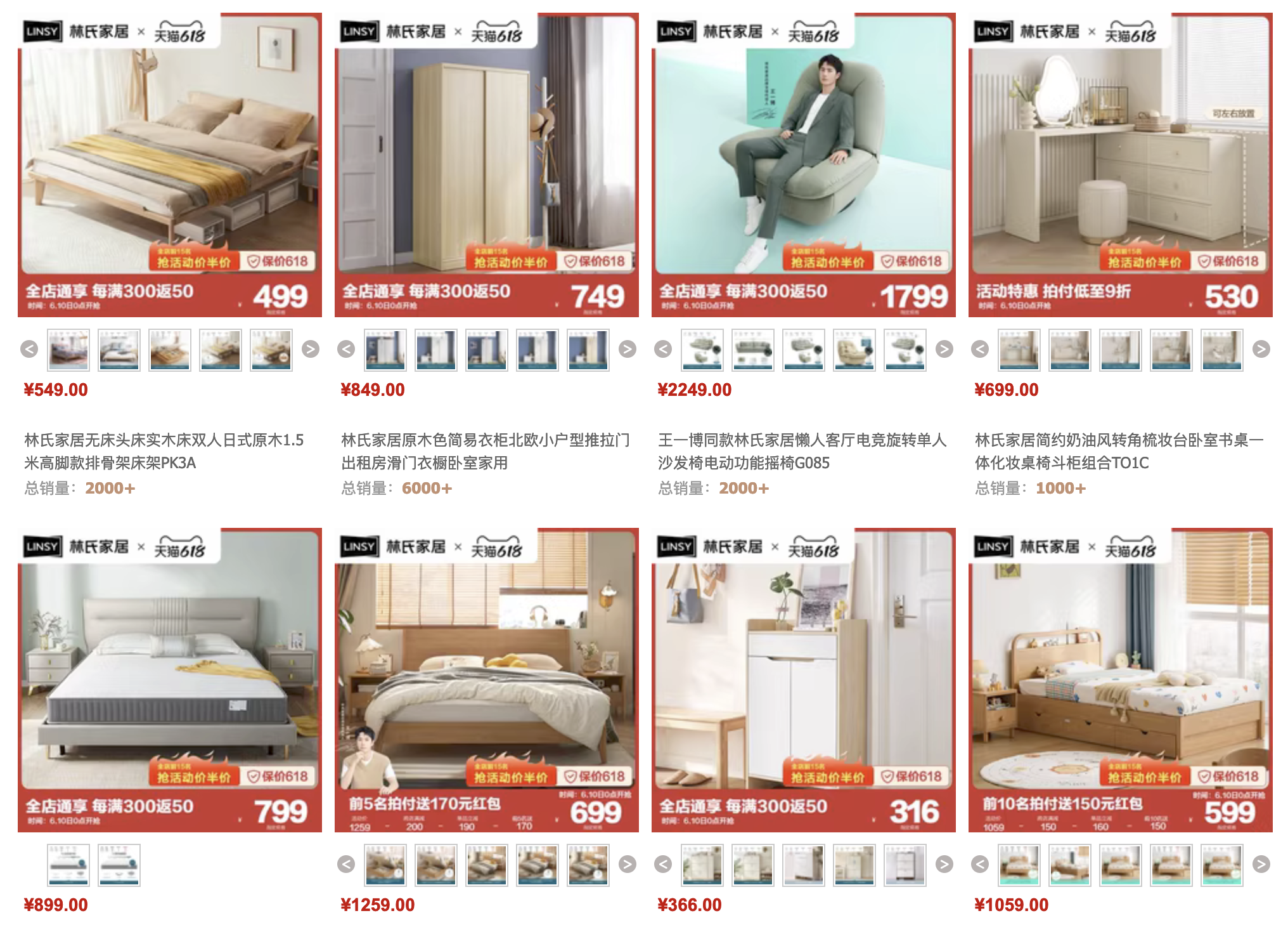 此次林氏家居计划上架新品近400款,其中重点新品110款,“其实去年双11就已经在研究消费者需求,同步规划今年618的新品。”