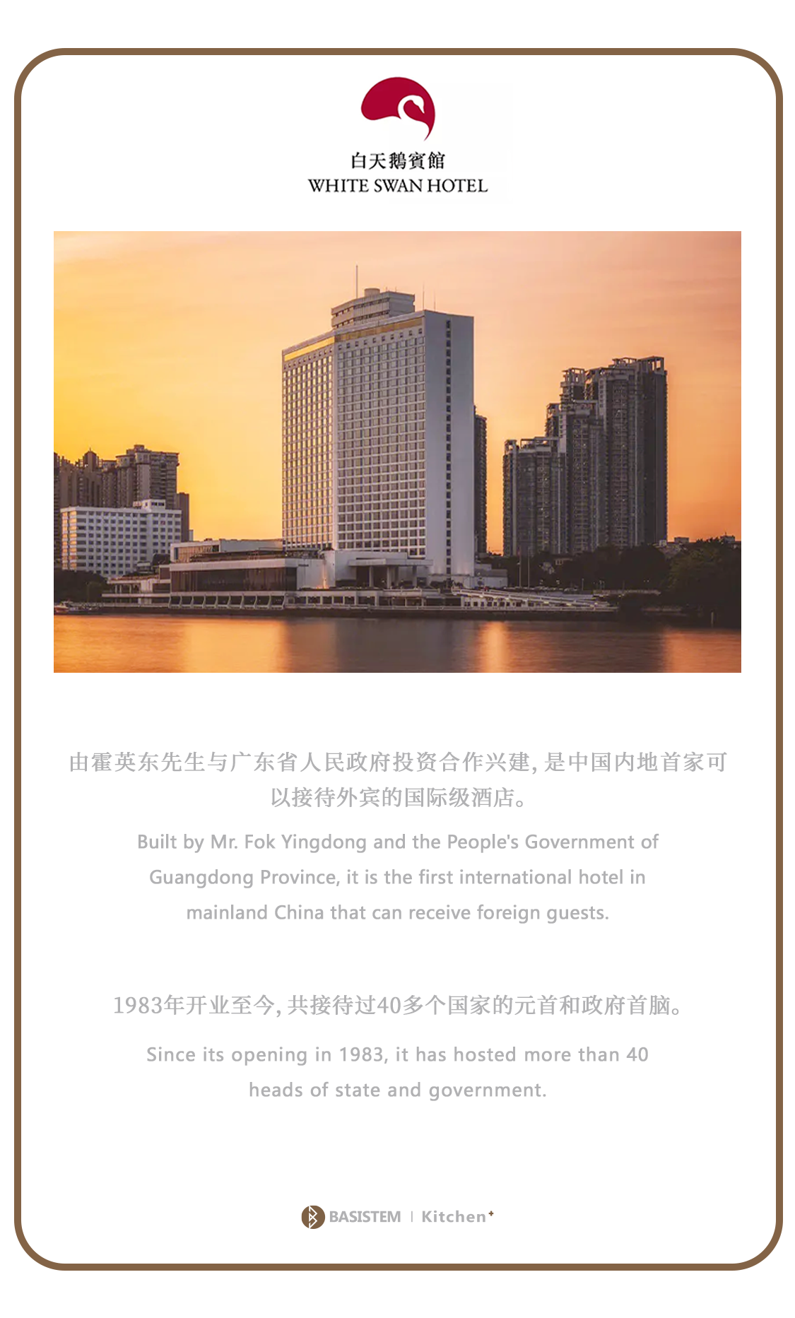 巴斯蒂姆发布会场--白天鹅宾馆由霍英东先生与广东省人民政府投资合作兴建,是中国内地首家可以接待外宾的国际级酒店,1983年开业至今,共接待包括英女王伊丽莎白二世在内的40多个国家的元首和政府首脑。正如巴斯蒂姆此次发布的厨房系统的对于世界厨房收纳的进步一样,非常有历史意义!