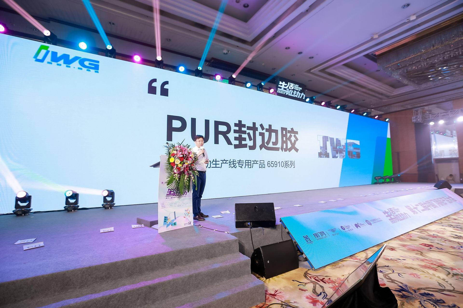 IWG永特耐作为胶粘领域的知名品牌,现场行业首发“4.0高速产线专用PUR”。“4.0高速产线专用PUR”具备高初粘、低涂布、快速固化和定位、不易溢胶、板面污染极少等优势,解决了传统PUR封边时开胶、板污、胶线色系不匹配等痛点,助力家居高速生产线真正实现高速生产。