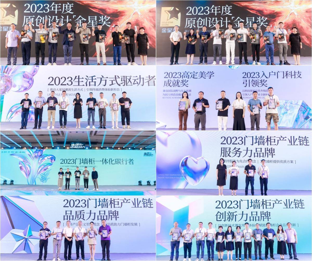 伴随着隆重的颁奖仪式,大会进入高潮。2023门墙柜原创设计金星奖、2023生活方式驱动者、2023空间氛围缔造者、2023高定美学成就奖、2023入户门科技引领奖、2023系统门窗制造进阶奖、2023门墙柜一体化碳行者、2023门墙柜产业链「创新力」品牌、2023门墙柜产业链「品质力」品牌、2023门墙柜产业链「服务力」品牌等行业大奖,是行业奋斗者们的荣耀,也是激励,激励家居人以市场为中心,以用户为中心,不断奋进,在为市场服务中实现自我升华。