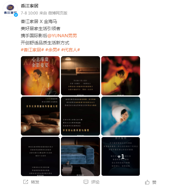 7月8月,香江家居与金海马官宣全新品牌形象代言人——国际影后余男。