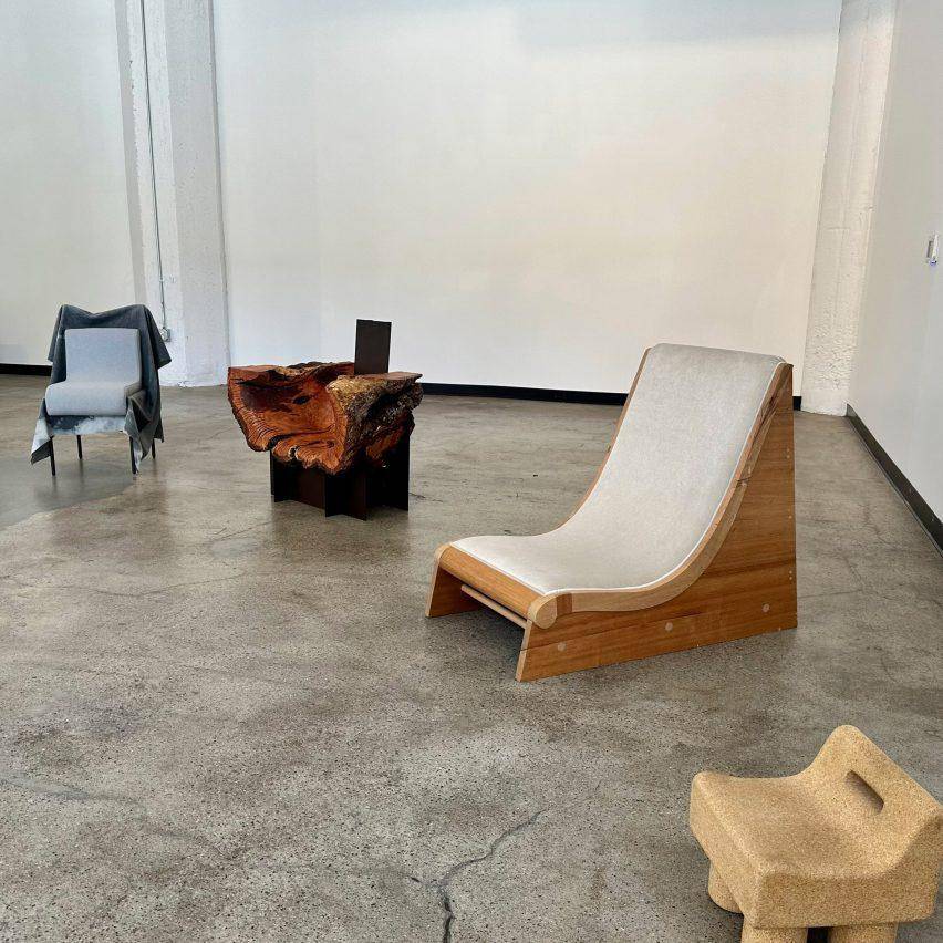Studio Big Moon的James Mitchell打造了一把镶嵌着核桃木和黄铜的古怪椅子,而Sam Klemick与Maggie Holladay两位设计师联手的座椅设计则展示了在木质座椅与织物结合的新方法。