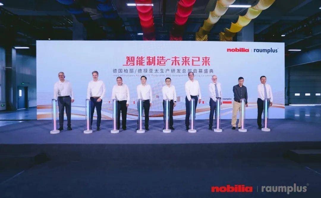当天,无锡市副市长秦咏薪先生;无锡市高新区党工委书记、新吴区委书记崔荣国先生;无锡市高新区党工委副书记、管委会副主任,新吴区委副书记洪延炜先生;德国柏丽CEO Dr.Lars Michael Bopf;德国柏丽CFO Christopher Stenzel;德意志联邦共和国驻华大使馆上海总领馆领事文化和科技处处长Mr.Uwe Koch;柏丽(中国)总裁伍力先生;德禄(中国)总裁王伟东先生;德禄中国CTO Mr.Kai Baumgarten参加本次庆典的揭幕仪式,正式书写两大家居业巨头——德国柏丽nobilia与德禄raumplus在中国“智造”行业的新华章,进一步推进中国家居产业数字化转型,加大力度绘就智能制造新图景。