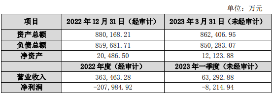 资料显示,宝鹰建设成立于1994年4月11日,法定代表人为黄如华,经营范围包括承担各类建筑(包括车、船、飞机)的室内外装饰工程的设计与施工;各类型建筑幕墙工程设计、制作、安装及施工等。该公司2022年实现营业收入为36.35亿元,净利润为-20.80亿元;今年一季度实现营业收入6.33亿元,净利润为-8214.94万元。截至2023年3月31日,该公司资产总额为86.24亿元,负债总额为85.03亿元,净资产1.21亿元。经查询,宝鹰建设不属于失信被执行人。