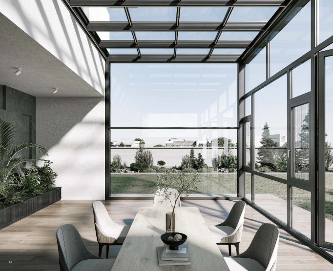 阳光房主要主体是玻璃,由顶面、立面两个部分的主体构成,如果想要隔热效果好,要在这两个方面做功夫。顶部的玻璃可以选择抗冲击强的夹胶玻璃,可以有效避免高空坠物等安全隐患。立面可以选择中空玻璃,强度高的同时可以有效阻隔热量,做到很好的隔热。