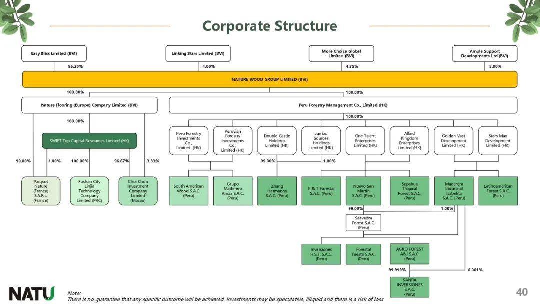 从股东架构方面看,Nature Wood在上市前的股东架构中,其控股股东是佘学彬Mr.Hok Pan Se夫妇,他们通过Easy Bliss(佘学彬占60.2%、其配偶袁顺意Ms.Son I Un占39.8%),持有86.25%的股权;Ms.Soi Peng Un(袁顺意的姐妹),通过Ample Support Developments持有5%的股权;梁志华Zhihua Liang,持有4.80%的股权;Linking Stars(其中Ms.Soi Peng Un占13.39%)持有4.00%的股权。